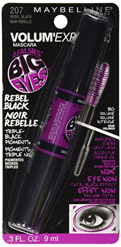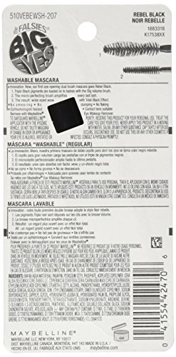 -. Binding : Health and Beauty -. Brand : Maybeline New York -. Color : Rebel Black -. EAN : 0041554424706 -. Feature : Triple black pigments / Big volume brush / No smearing, clumping, or flaking -. IsAdultProduct : 0 -. Label : Maybelline, Consumer Products Division of L'Oreal USA S/D, Inc. -. Manufacturer : Maybelline, Consumer Products Division of L'Oreal USA S/D, Inc. -. Model : Washable, 207 Rebel Black -. MPN : K1753800 -. NumberOfItems : 1 -. PackageQuantity : 1 -. PartNumber : K1753800 -. ProductGroup : Beauty -. ProductTypeName : BEAUTY -. PublicationDate : 2014-10-20 -. Publisher : Maybelline, Consumer Products Division of L'Oreal USA S/D, Inc. -. ReleaseDate : 2014-09-01 -. Studio : Maybelline, Consumer Products Division of L'Oreal USA S/D, Inc. -. Title : Maybelline New York The Falsies Big Eyes Washable Mascara, Rebel Black, 0.30 Fluid Ounce -. UPC : 041554424706