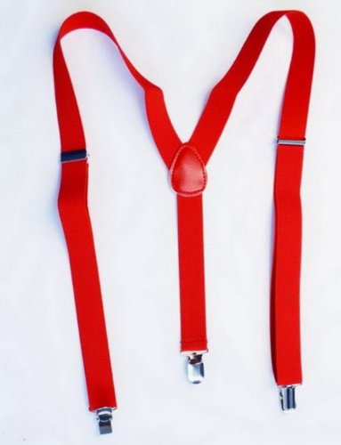 -. Title : EOZY Adjustable Braces Suspenders Unisex Neon Glitter Plain Mens Womens Clip-on Suspenders Elastic Y-shape Solids Punk 80's 80s 70s Disco Dance Costume Party Pants (Red)