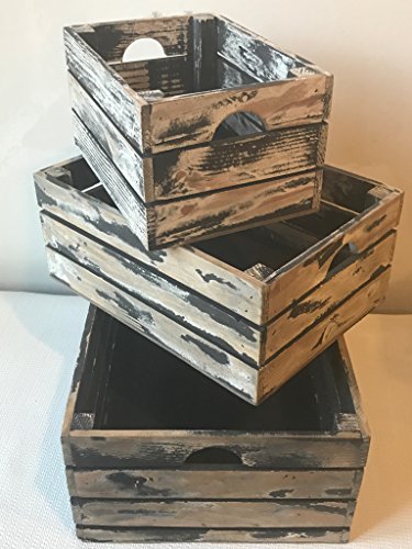 Rustic Decorative Wood Crates (Set of 3) (Black and Natural Distressed)