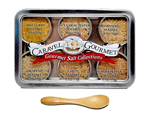 Spicy Sea Salt Sampler - Caravel Gourmet - Hot Curry, Spicy Garlic Pepper, Habanero, Jalapeno, Cajun, and Ghost Pepper