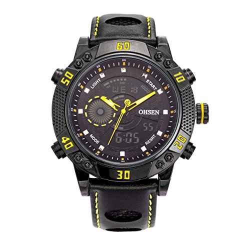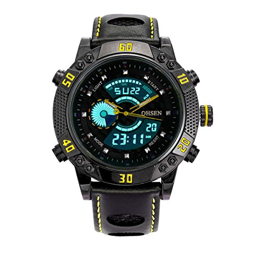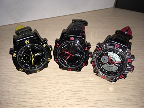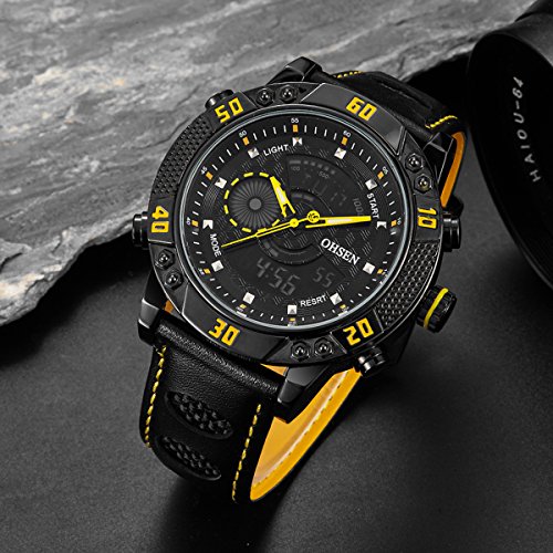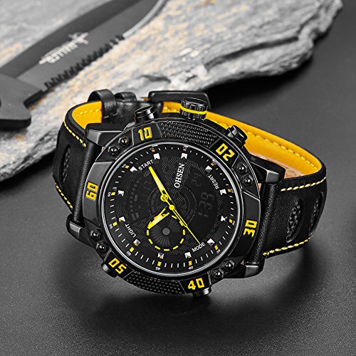 원본상품명: BINZI メンズ腕時計 ミリタリ?,カジュアル 多機能 防水 レザ?バンド アナログ表示 日付 1609 ブラックきいろ