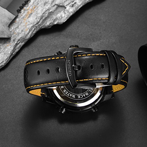 BINZI 맨즈 손목시계 밀리터리,캐주얼 다기능 방수 레더 밴드 아날로그 표시 날짜 1609 블랙 와 있어라