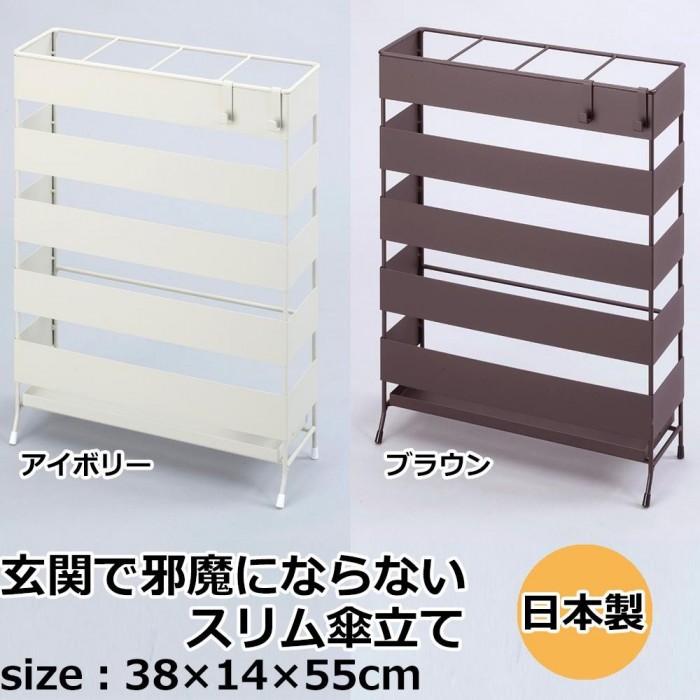 | 奥行14cmで玄関をスッキリ、広々使えるスリムな傘立て。 |