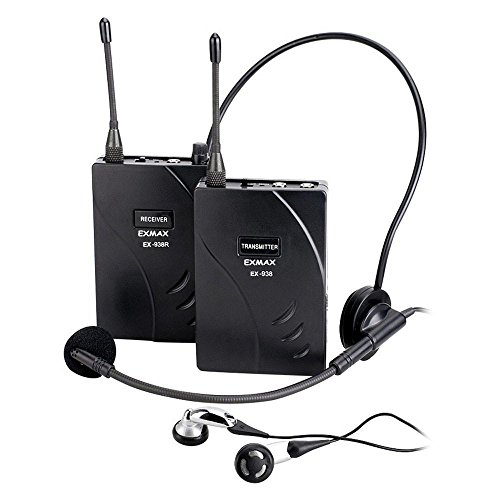 EXMAX UHF-938 Professional UHF Wireless Tour Guide System for Tour Guiding, Teaching, Travel, Field Interpretation - 1 Transmitter and 10 Receivers