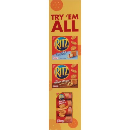 -. Binding : Health and Beauty -. Brand : Nabisco -. EAN : 0799554685565 -. Feature : Open for fun / Snack inspirations with Reduced Fat Ritz crackers; try Neufchatel and roasted veggies or low fat cheddar and an apple slice / 50% less fat than Original Ritz / No trans fat, no cholesterol / Kosher -. IsAdultProduct : 0 -. Label : Nabisco -. LegalDisclaimer : Actual product packaging and materials may contain more and different information than what is shown on our website. We recommend that you do not rely solely on the information presented and that you always read labels, warnings, and directions before using or consuming a product. -. Manufacturer : Nabisco -. PackageQuantity : 12 -. ProductGroup : Health and Beauty -. ProductTypeName : HEALTH_PERSONAL_CARE -. Publisher : Nabisco -. Studio : Nabisco -. Title : PACK OF 12 - Nabisco Ritz Crackers Reduced Fat, 12.5 OZ -. UPC : 799554685565