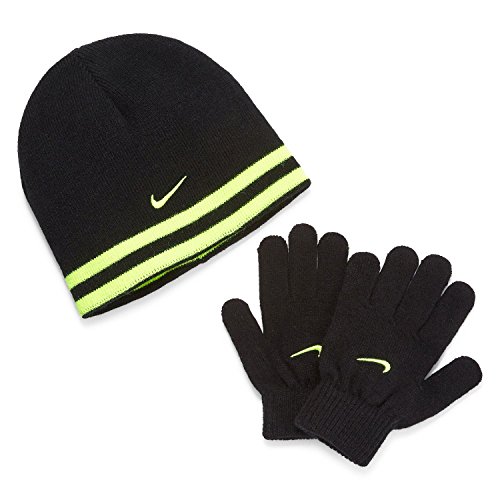 Product DescriptionNike Swoosh Reversible Knit Hat Gloves Set Black/Volt Sz 8/20.0