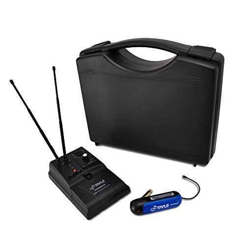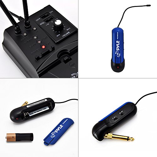 The Pyle PDWMG46 Premier Series Wireless Guitar Bug Transmitter Receiver provides reliable sound quality and performance. This compact system connects to your instrument providing you with total freedom of movement for active and on-stage performances. Light, portable and battery operation allows for quick and easy setups. The receiver is a free-standing, twin aerial unit in a pedal-style case. Receiver is battery powered by two 'AA' batteries and transmitter also battery powered by one 'AAA' batteries.Feature