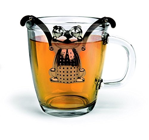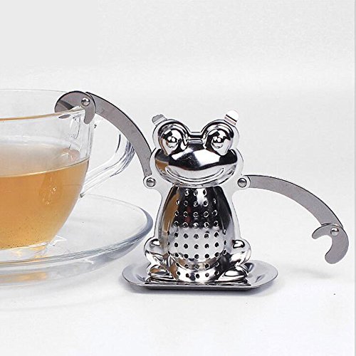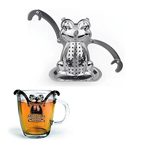 Studio : BLANCHE_ZHU Publisher : BLANCHE_ZHU Product Description Use this adorable froggy stainless steel tea infuser to prepare your favorite loose tea. His arms and hands move to create a custom fit to your favorite tea mug. Rest him on the included drip tray when your tea is steeped. Easily opens and snaps close. 0