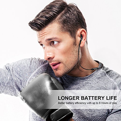 Dual Battery Design: Original dual battery design, play for up to 8 hours; longer than most earphones on the market. Bluetooth 4.1 ensures a connection range of up to 33 ft, compatible with the iPhone 7 or any Bluetooth device.
