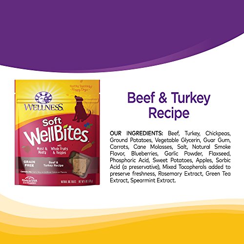 -. Feature : GRAIN FREE: Delicious grain free soft dog treats made with two kinds of fresh meat, like beef & turkey / TREATING OR TRAINING: Soft, delicious dog treats great for everyday treating or training / ALL NATURAL: Contains only premium, all natural ingredients with no corn, soy, artificial colors or flavors / MADE IN USA: Backed by our Wellness Guarantee and quality assured made in the USA with the finest globally-sourced ingredients / HAVE YOU SWITCHED your dog to Wellness Natural Dry and Wet Dog Food yet?