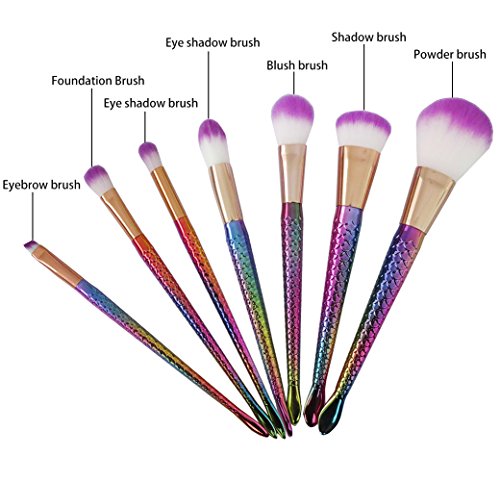 - 7PC/set mermaid makeup brush, can be used as a powder brush (makeup brush),shadow brush, blush brush, eye shadow brush, foundation brush, eyebrow brush