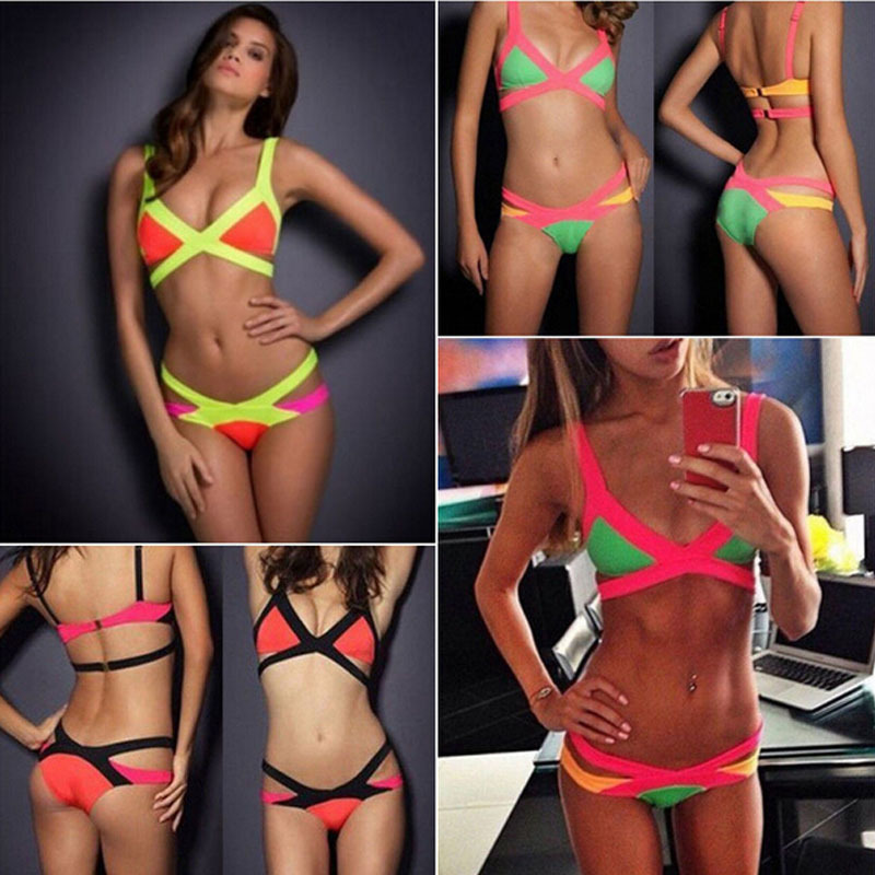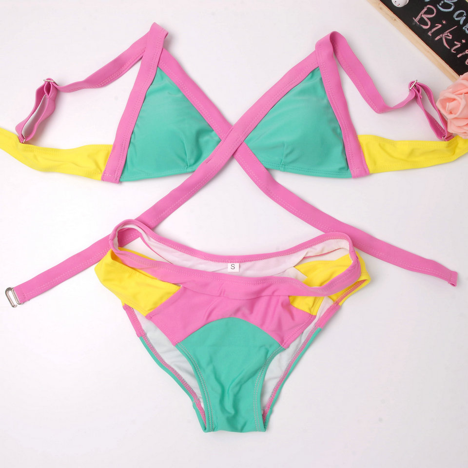 2016 New Swimsuit Summer Sexy Bikini Dynamic Bordered Color Bandage Brand Gini Bikinis Set Swimwear Brazilian Biquini Plus Size