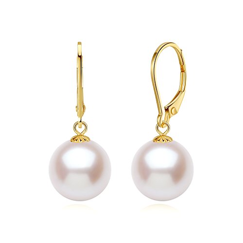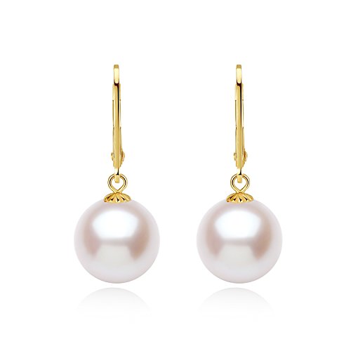 18K Gold AAAA Quality Round White Freshwater Cultured Pearl Dangle Earrings 11mm PORTWORLD High Quality Fine Jewelry: Freshwater pearls contains a variety of beneficial trace elements for human body. Pearl to its warm, beauty, love for people has always been known as Queen's jewelry.