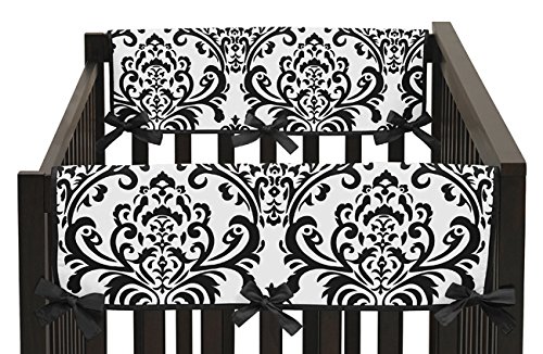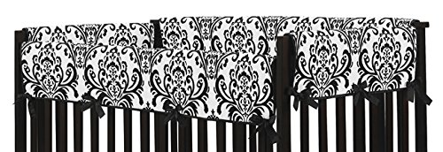 -. Feature : Features an exclusive black and white damask print fabric with coordinating black ties. / 100% Cotton Fabrics / Set of 2 Side Rail Guards 27 in. x 18 in. ea. / Attaches easily with secure ties. Easy machine washing and drying. / This design has matching accessories such as window treatments, hampers, shower curtains, memory photo boards, body pillow cases and decorative pillows.