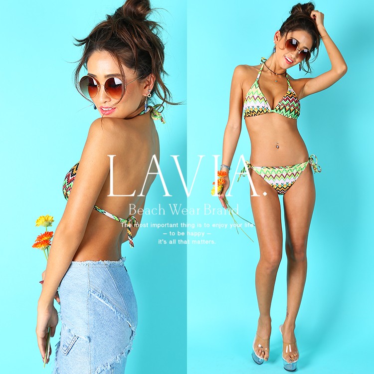 | 商品特徴 | LAVIA(ラヴィア)から新作のプチプラ水着が入荷しました。人気の三角ビキニはワイヤーレスで着心地抜群で、華奢な紐や胸部のトップデザインが女性らしさを高めてくれます。毎年の定番シルエットだからこそ、デザインにはこだわりたい!そんな方におすすめなボタニカルな色合いが肌を健康的にみせてくれるこちらの三角ビキニ。アンダー、ショーツのサイドは紐タイプなので自分のスタイルに合わせて着こなしが可能です。 【特徴】 定番スタイルといえばやっぱり三角ビキニ!バックスタイル、ショーツのサイドは紐タイプなのでスタイルに合わせて調節可能です。縦長のフロント部分は胸をしっかり持ち上げてバストアップ効果も!カラフルなプリントと珍しいブロック柄が是非夏に着ていただきたい一着です。 |