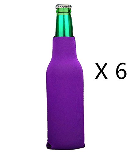 330ML (12 OZ) Collapsible 3MM Neoprene Beer Bottle Beverage Cooler Coolie Cover Holder Huggie Insulator Sleeve - 6 PCS (6, Purple)