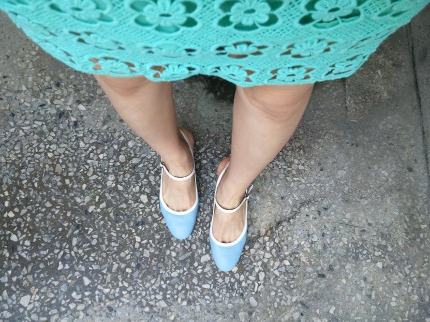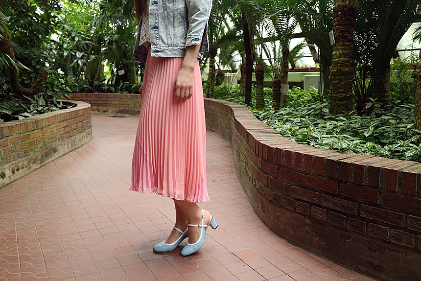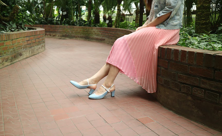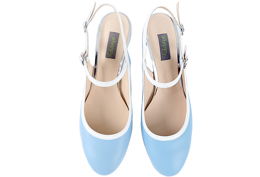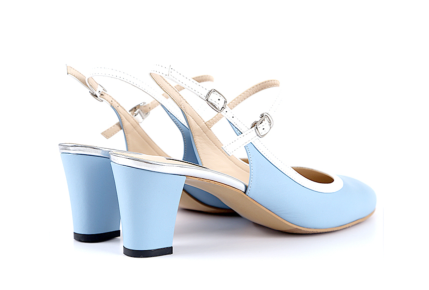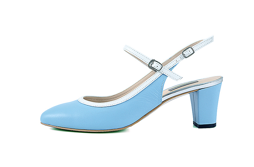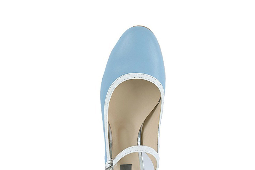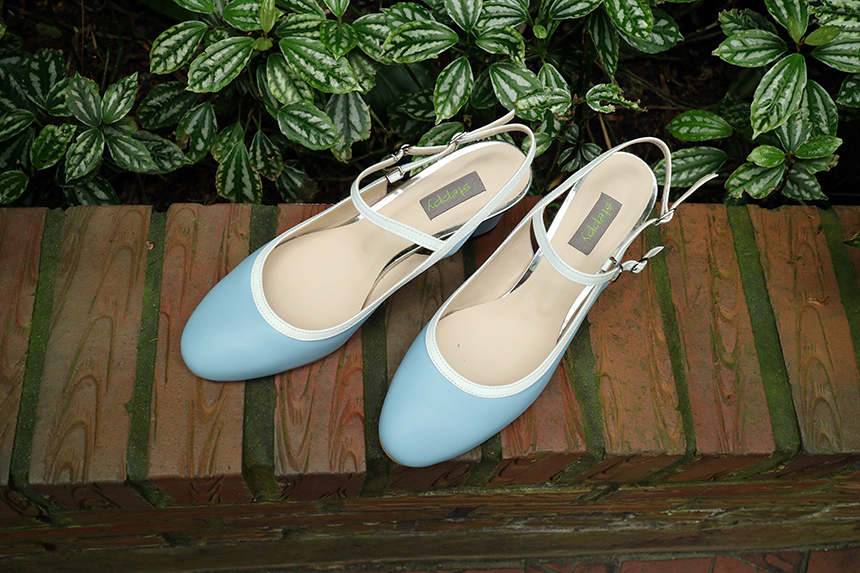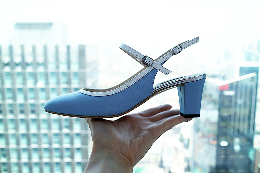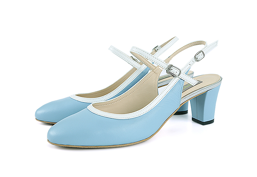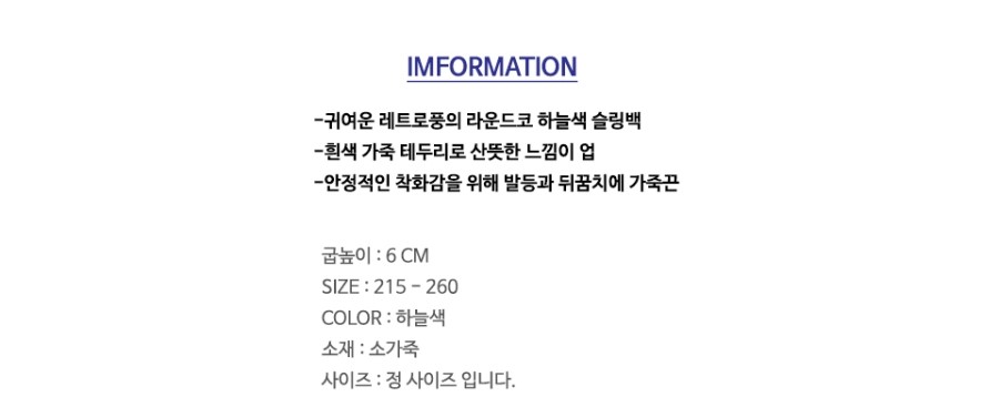 하늘색 라운드코 미들힐 슬링백