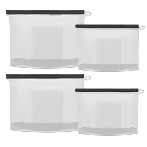 Jsentai Set of 4pcs Reusable Silicone Food Preservation Bags FDA & SGS Food Grade Silicone Food Storage Containers for Cooking Freezing Storing Hot/Cold Food (2 Large + 2 Small) Semitransparent