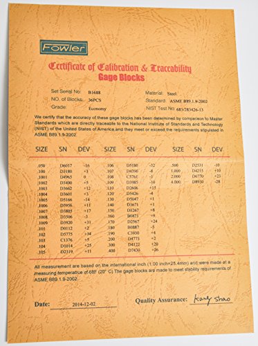 Fowler Full Warranty 53-672-036-0 Steel Shop-Blox Rectangular Economy Gage Block Set, 36 Piece