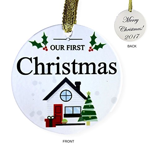 1ST CHRISTMAS ORNAMENT 2017. The dated Xmas ornament that comes in the gift set has a cute holiday design on the front and Merry Christmas 2017 is printed on the back. A gold ribbon is included and already attached to the ornament. The frame holds a standard 4 x 6 inch photograph. Great gift for the newlyweds first married Christmas gift.