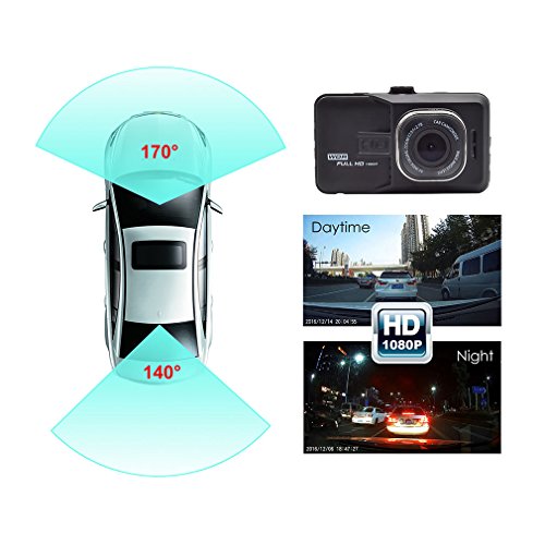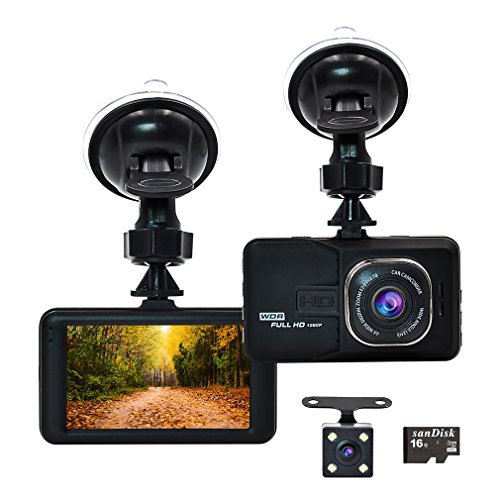 Accfly Dash Cam 1080P 170° Wide Angle Lens 3.0" LCD Screen Car Dash Camera DVR Recorder With G-Sensor , Loop Recording, Motion Detection ,Vehicle Rear Camera,16GB Card
