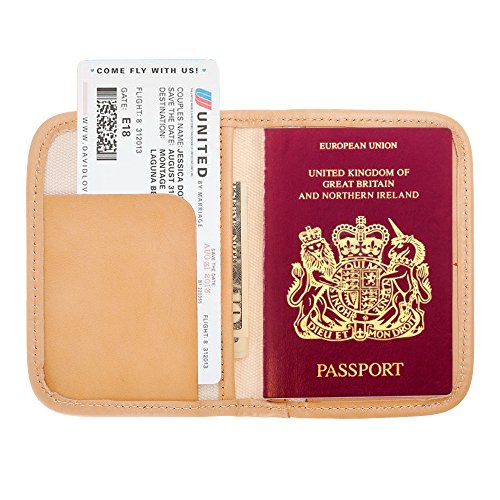 Product Description Material: Canvas vegetable tanned leather Size: 4.3 inch / 10.7 cm x 5.7 inch / 14.5 cm Item Weight: 60 g Package Content: 1 x Passport Wallet