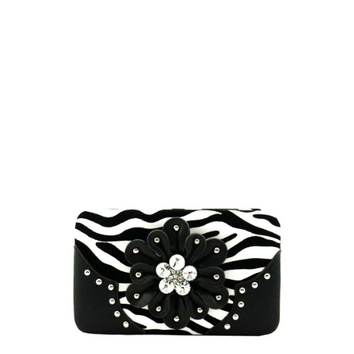 -. Title : FLOWER RHINESTONE ZEBRA P.R.INTED WALLET - BLACK