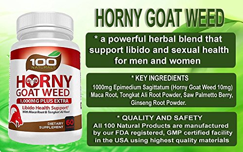 100 Naturals Horny Goat Weed is a powerful herbal blend that supports libido and sexual health for daily use by men and women