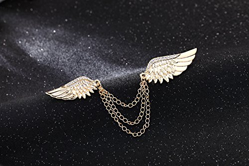 Let your style delicate with this Crystal Angel Wing Chain Brooch Pin, coming with double layered chains to complete the look, the collar pin brooch is crafted of polished silver plating and secures with a safety pin clasp.Feature