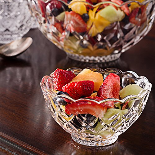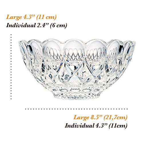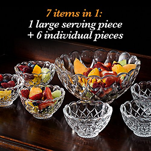 Dessert Round Bowl Set, 1 Large Bowl and 6 Small Serving Pieces, Premium Crystal-Like Glassware, Set of 7