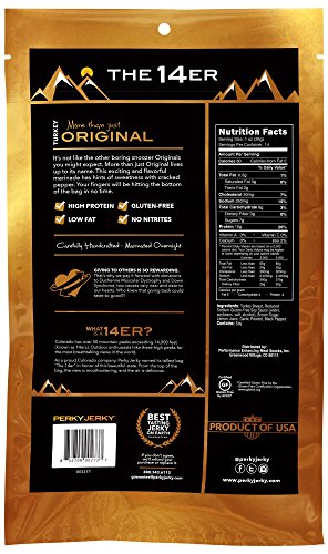 ReleaseDate : 2015-03-23 Studio : Perky Jerky Publisher : Perky Jerky Binding : Grocery Product Description More Than Just Original: This peppery delight will surprise you. Perky Jerky is an all natural, premium jerky that is unlike any other. Tender cuts of meat marinate overnight in a blend of all natural ingredients to create a deliciously bold taste and tender texture. Unlike most jerky products ours has none of the bad stuff: No Nitrates. No Preservatives. No Added MSG. And it's Gluten Free. Satisfying and portable, it’s the perfect fuel for your next adventure. 0