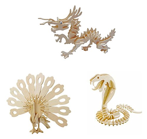 -. Title : 3D 木製 立体パズル 3点セット DIY ( 恐竜、動物、爬虫類 etc )創造力を鍛える 知育玩具 夏休み 工作キットにも最適。
