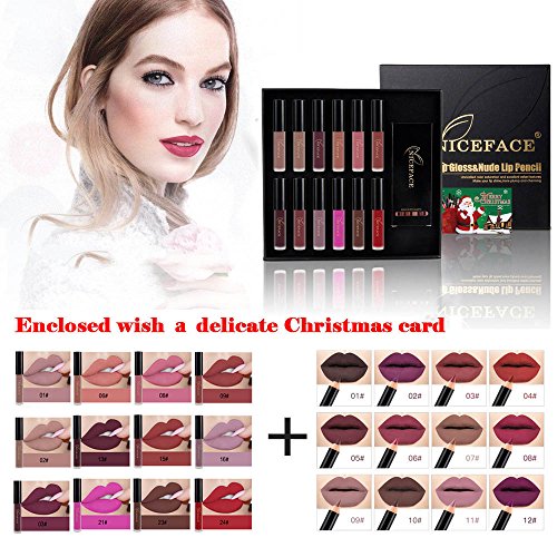 12Color Matte Liquid Lipstick + 12Color Lipliner Pencil HUBEE Long Lasting Waterproof Lip Makeup Kit Christmas Gift