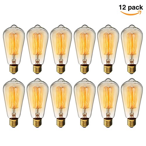 Vintage Edison Bulb KINGSO Dimmable 60W Edison Light Bulb Squirrel Cage Filament Incandescent Antique Light Bulb E27 E26 Base ST64 110V - 12 Pack