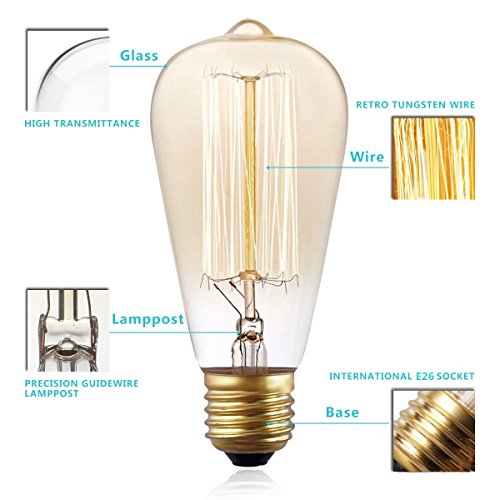 - 【Dimmable and Comfortable Light】①You can adjust the brightness of the light as needed. Dimmable vintage Edison bulbs provided a much brighter and more useful light (dimmer switch NOT included).②The bulb giving off a warm light, creating you homey and comfortable ambiance. Add an elegant, historic touch to your house with these antique bulbs.