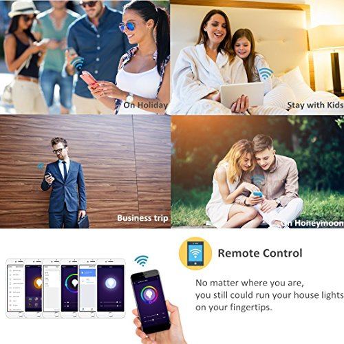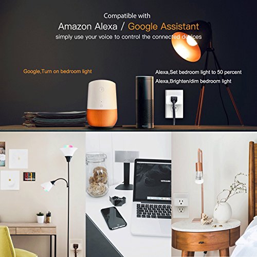 🏠【REMOTE CONTROL】compatible with Alexa & Google assistant voice control.You can use simple voice command to turn On / Off your lights and appliances, provide your life more convenience. Also you can control it by apps on your smart phone from any where and at anytime.You can create groups to control two or more bulbs.
