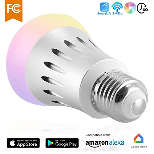 WiFi Smart LED Light Bulb,A19,Dimmable Multicolored Color Changing Lights Bulb,compatible with Amazon Alexa (Silver)