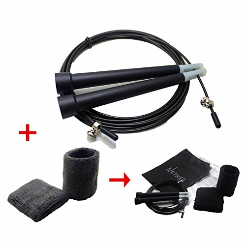 NOTHER JUMP ROPE ADJUSTABLE SPEED ROPE DOUBLE UNDER BEARING JUMPING ROPE WITH A PAIR OF WRISTBANDS AND A CARRYING CASE FOR MEN WOMEN AND KIDS N1