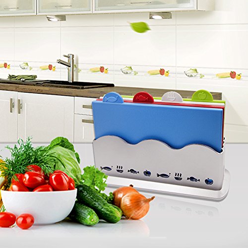 ✪ 4 Color-Coded Cutting Board - Plastic cutting board features color code,designed to prevent cross-contamination of different food type: fish,vegetable,meat,cooked food, it is cleaner and healthier.