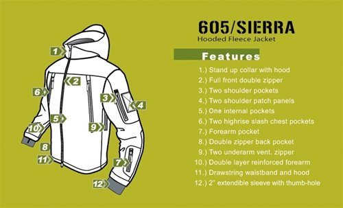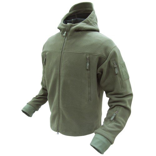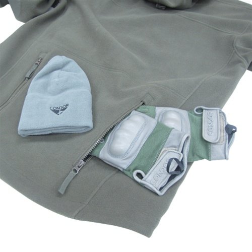 Product Description The Condor Sierra Hooded Fleece features a stand up collar with hood, abrasion-reinforced elbow, multiple pockets and a 2" extendable sleeve with thumb-hole. Its soft outer shell and warm interior lining make it comfortable yet durable. 0