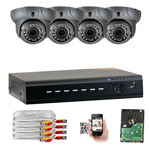 GW Security 4CH AHD HD 1920 x 1080p Outdoor Indoor DVR Security System with (4) x 1920TVL 2.8-12mm Varifocal Zoom Lens 1080P Dome Cameras, QR Code Remote Access