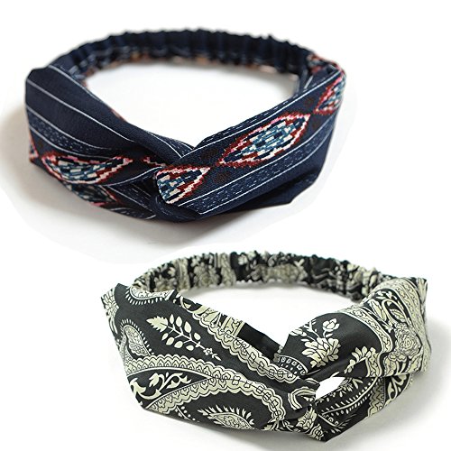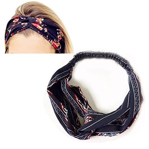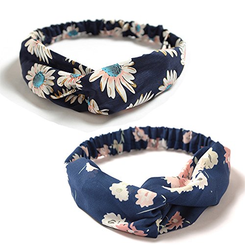CHRISLZ 10 Packs Women's Headbands Floral Print Headwrap Twist Knot Hair Band Yoga Head Wraps Sports Elastic Turban (5-color)