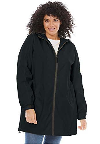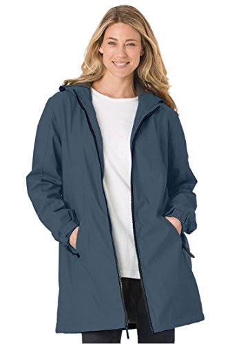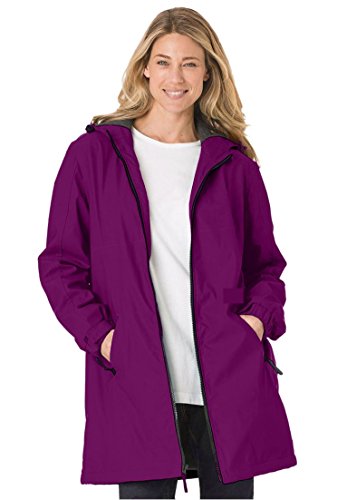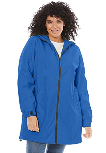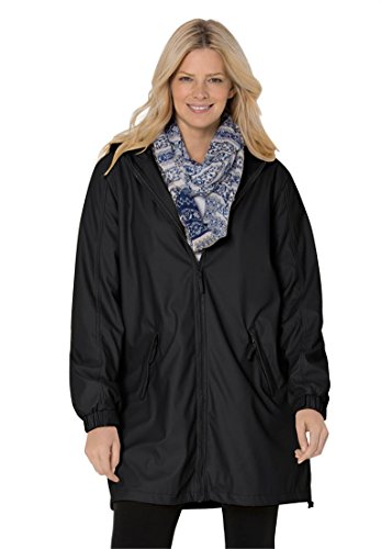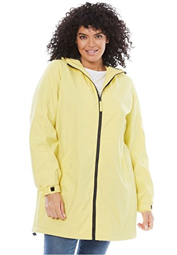 Studio : Woman Within Publisher : Woman Within Binding : Apparel Product Description You'll love the lightweight comfort of this plus size slicker raincoat and the expert relaxed fit. Stay warm, cozy and dry. relaxed fit jacket layers over anything for comfort 35" gives you coverage to the lower thigh hood has adjustable bungee cord for comfort long sleeves have armholes shaped for ease of movement side slash pockets with security zippers soft washable lightweight woven polyurethane, imported layer over a sweater wear with boots Women's raincoat, slicker coat, in sizes 14W, 16W, 18W, 20W, 22W, 24W, 26W, 28W, 30W, 32W, 34WThe Comfort FactorWe have designed raincoats for full-figured women for over 113 years and each of the 34 plus measurements involved have been determined for your perfect comfort. This one is super light with a relaxed fit, repels rain and wind. What Customers LoveOur raincoats are popular for the relaxed cut, the soft feel of the fabric, the classic good looks. The waterproof hood means you don't need an umbrella. 0
