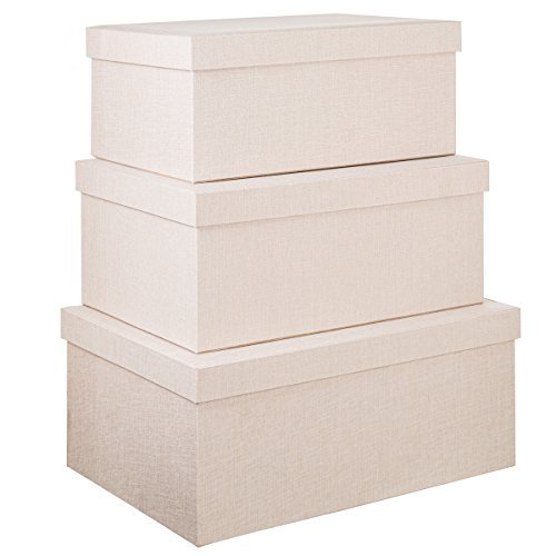 This bin set consists of 3 differently sizes boxes that can easily accommodate anything from cosmetics to makeup products, skincare products, toys, office items, crafts supplies, and much more. Made with strong cardboard for structure, the boxes are wrapped in polyester and lined with non-woven fabric for durability and sturdiness. When we say strong, we mean it!The boxes have a pretty design that's stylish, upscale, and will definitely complement any room decor! No matter where you place them, the boxes will certainly make any space look more fashion-forward and luxurious! The bins are the best possible solution for de-cluttering drawers, cabinets and work spaces, and they'll help you maintain everything clean and neatly organized!
