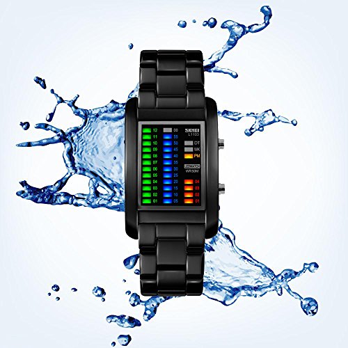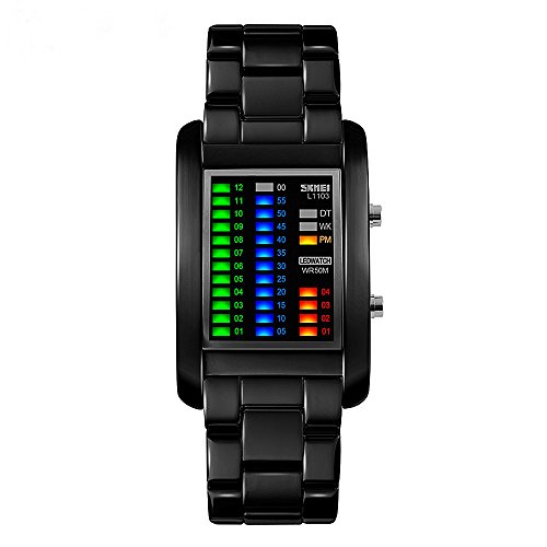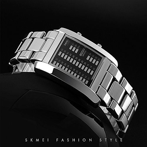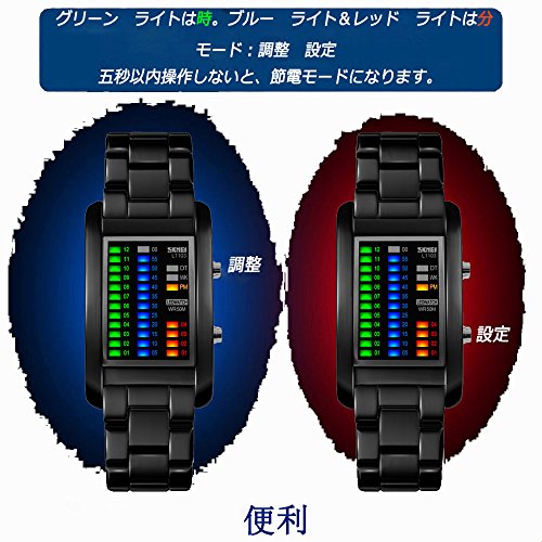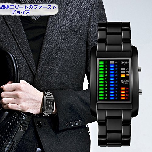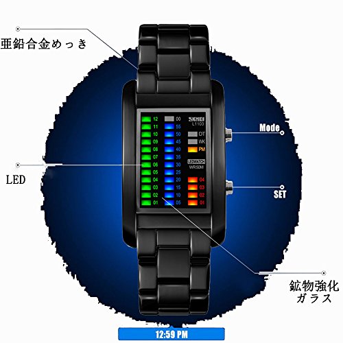 -. Feature : ケース長さ:45mm ケース幅:30mm  ケース厚み:10mm  バンド幅:22mm  風防素材:ドイツ鉱物強化ガラス 約重量130g / 高精度の日本石英、電池を使います。電子寿命:約2年、長寿命で、長く使用できます。 / 日付表示機能と曜日表示機能も付き、50m日常生活防水。素敵な防水効果で、手洗いや水泳や水浴の場合にも大丈夫です! / 四色LEDライト。画面が大きく、太陽光などの反射時にも見やすいです。パーティー、スポーツ、ビジネスやその他の行事の場合に相応しい、完璧なファッション時計です。 / ご購入日から30日以内返品・返金・交換サービスを提供いたします。知りたいことや疑問があるなら、ぜひお気軽にお問い合わせ下さい。