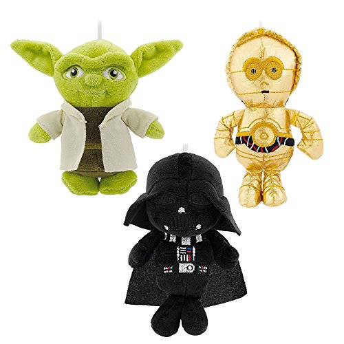 Star Wars Yoda, Darth Vader, and C3PO Plush Ornament Set from Hallmark (3 Item Bundle)