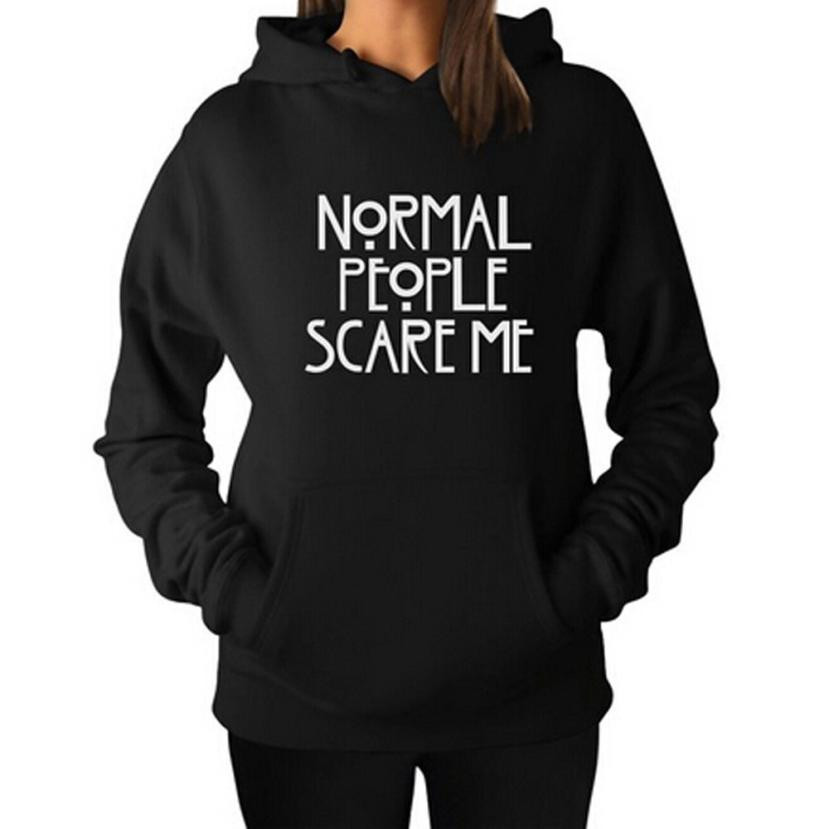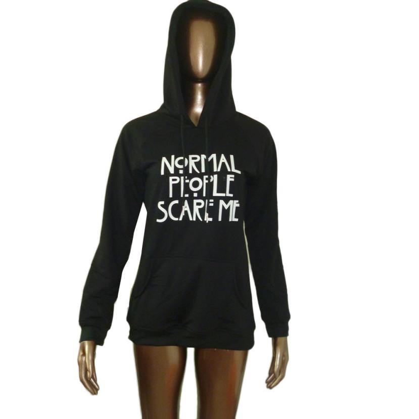 Fashion 2016 Womens Hooded T-shirt Normal People Scare Me Letter Long Sleeve Spring And Autumn Hoodie Pullover Tops Shirt Female