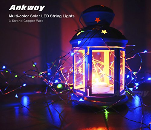 Solar String Lights Multi Color, Ankway 200 LED Fairy Lights 3-Strand Copper Wire Light 8 Modes 72 ft Solar String Lights Waterproof Twinkle Lights for Garden Patio Indoor Outdoor(Multi Color)