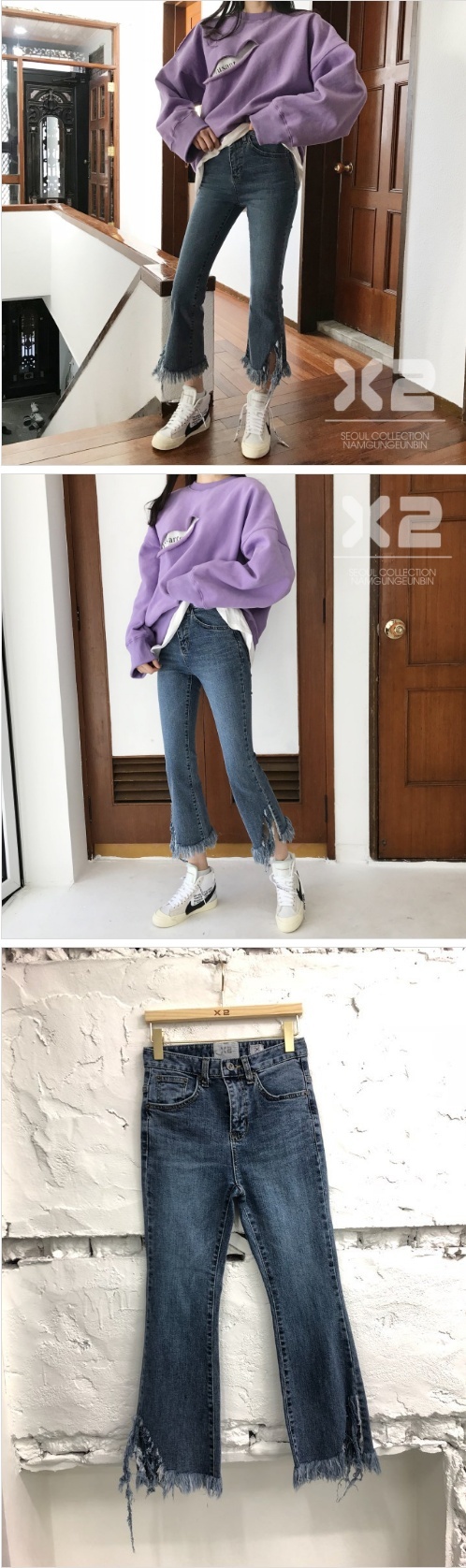 Women`s High Waist Bootscut Denim Pants with Cutting Out