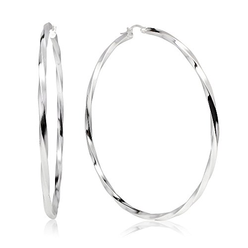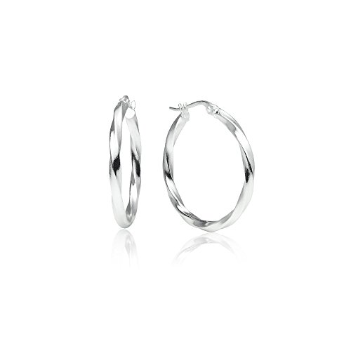 These earrings feature polished nickle free and tarnish free sterling silver high polished twist round hoops.